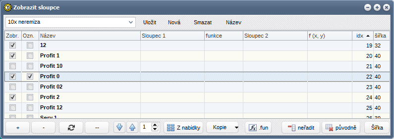 Čistě kvůli vyhodnocení sázení na vyhledané zápasy je aktivní i část Sloupce. Jsou v ní vybrány sloupce Profit 1, Profit 0 a Profit 2: