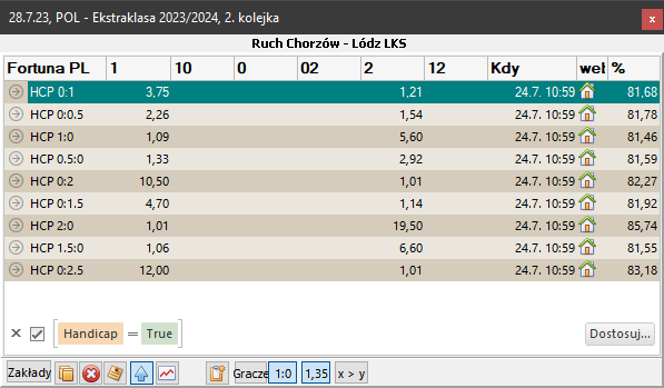 Na przykład kliknięcie kursu dla powyższego meczu spowoduje wyświetlenie następującego okna: