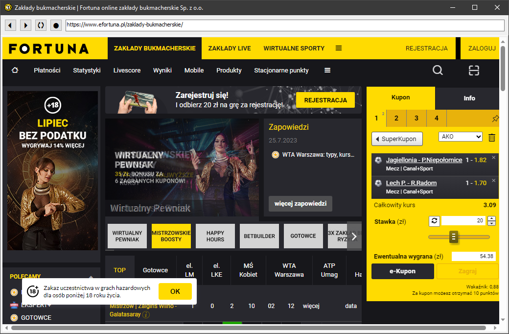 Z Trefíka jednym kliknięciem na mecz można przejść do serwisu Fortuna PL z kompletną ofertą kursów na dany mecz.