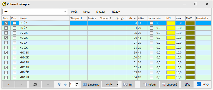 Díky aktivaci položky ŽK jsou ve Filtr / Sloupce dostupné nové položky: